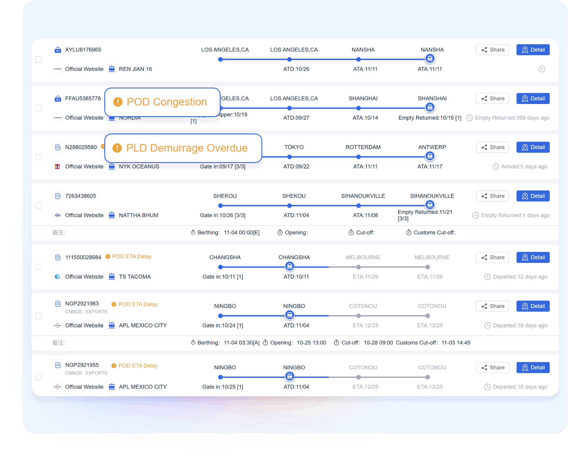 Global ports are expected to arrive at ETA delay warning, and real-time monitoring of ETA changes based on bill of lading numbers